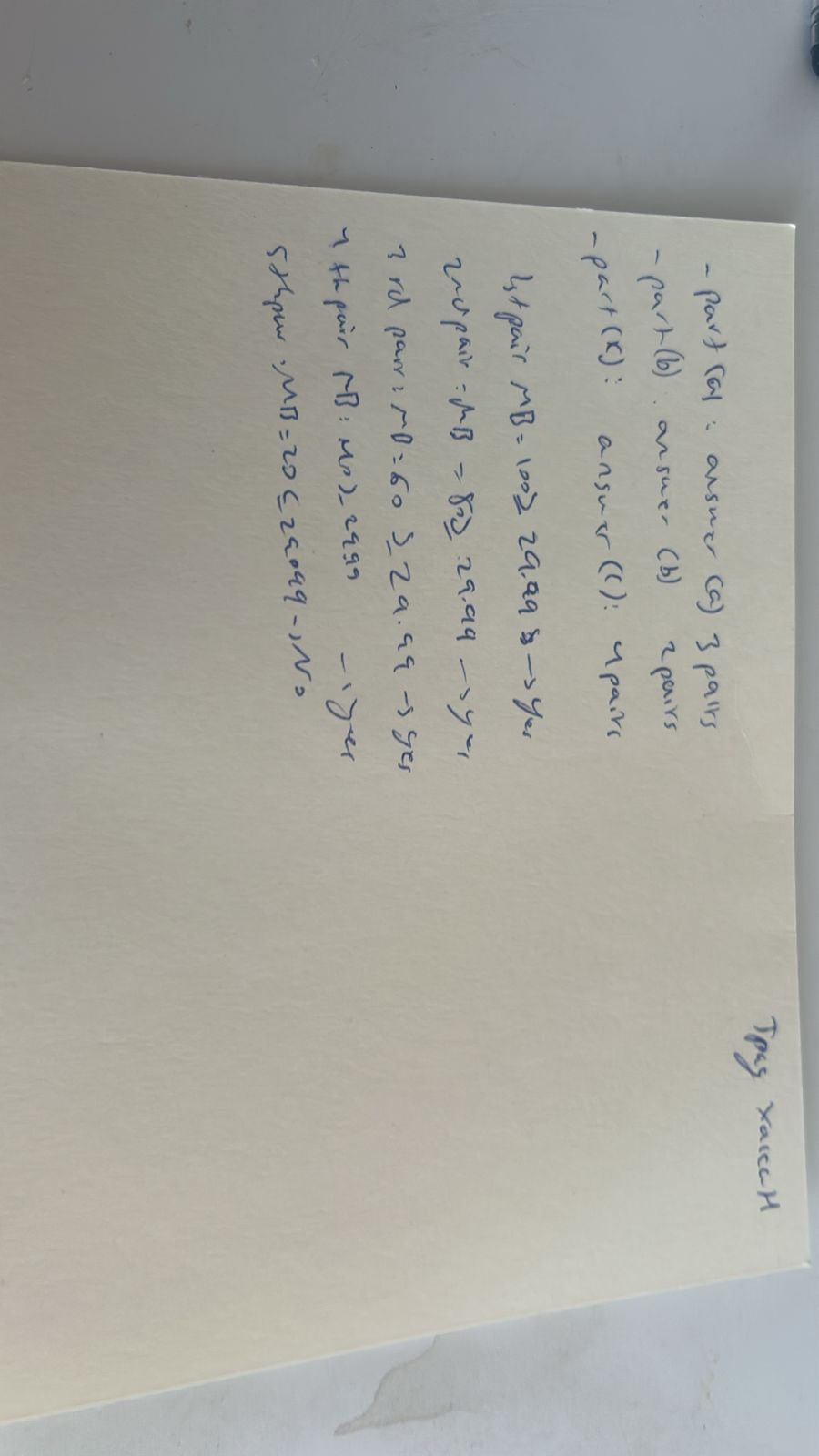 1️⃣a• For the 1st pair: MB = $50, Price = $29.99 → $50 ≥ $29.99 → Buy.