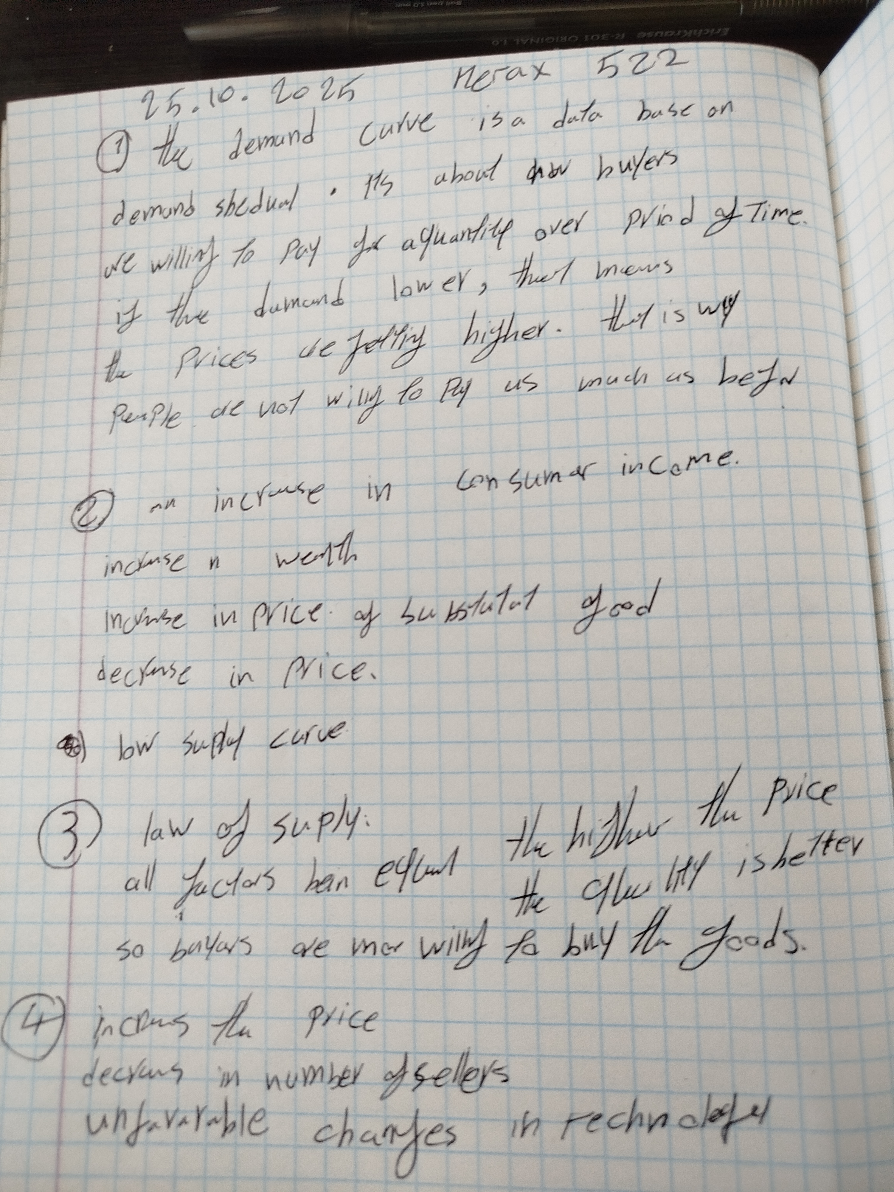 4. Name some factors that could shift the supply curve in to the left.